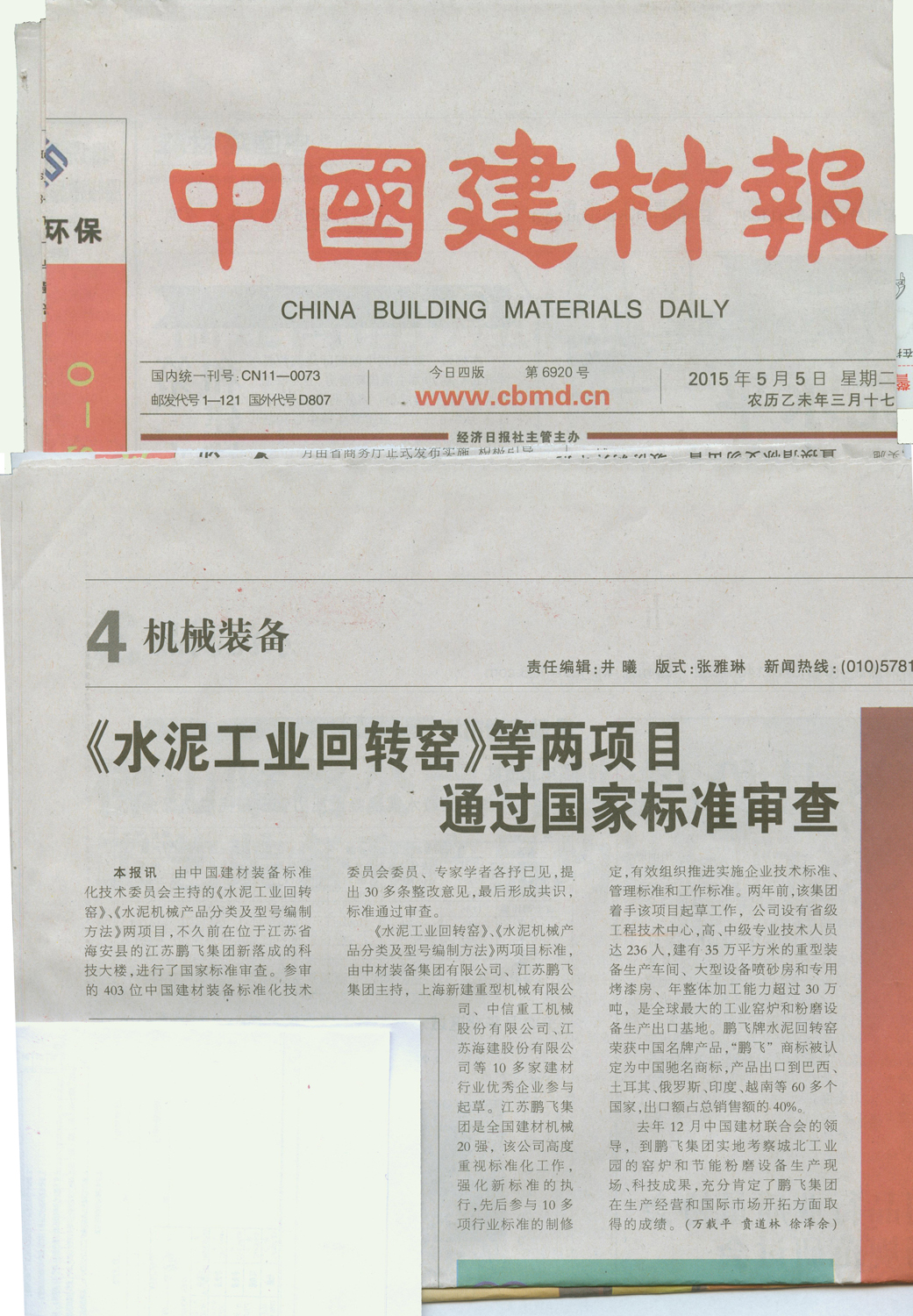 水泥工業(yè)回轉(zhuǎn)窯等兩項目通過國家標準審查