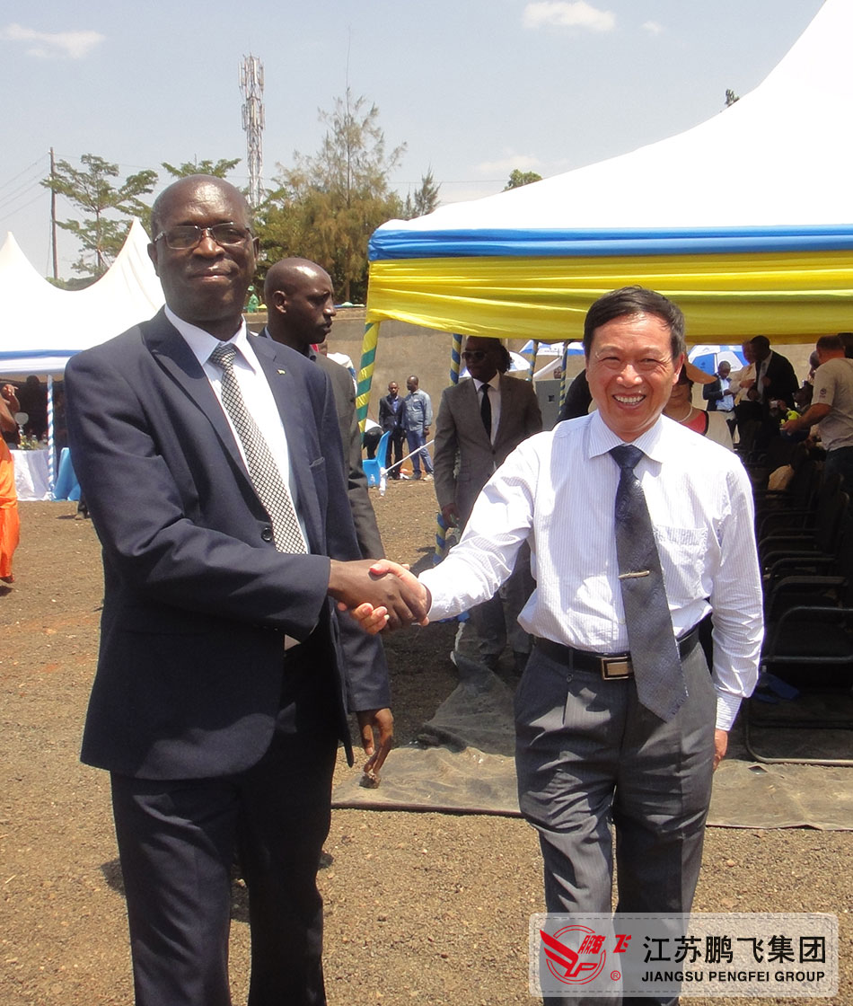 江蘇鵬飛集團董事長、總經(jīng)理王家安陪同盧旺達總理Mr ANASTASE MUREKEEI參觀工程現(xiàn)場