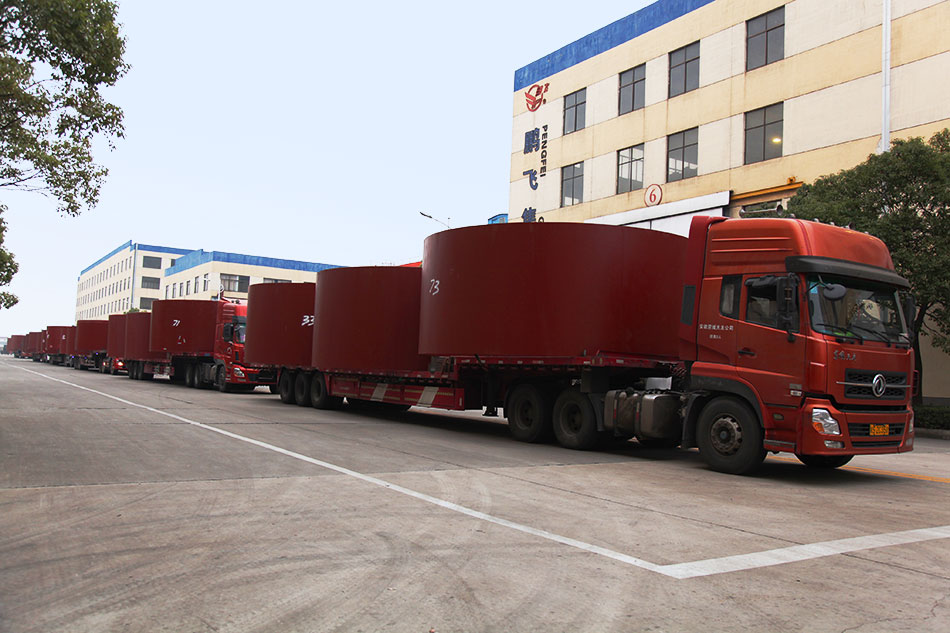 11月21日江蘇鵬飛集團(tuán)股份有限公司內(nèi)一片忙碌,工人師傅們?yōu)槌隹贏J5臺(tái)Φ5.4×52米回轉(zhuǎn)窯發(fā)貨做著準(zhǔn)備。公司經(jīng)過(guò)數(shù)月的加班加點(diǎn)終于保質(zhì)按期完成5臺(tái)Φ5.4×52米回轉(zhuǎn)窯制造。
