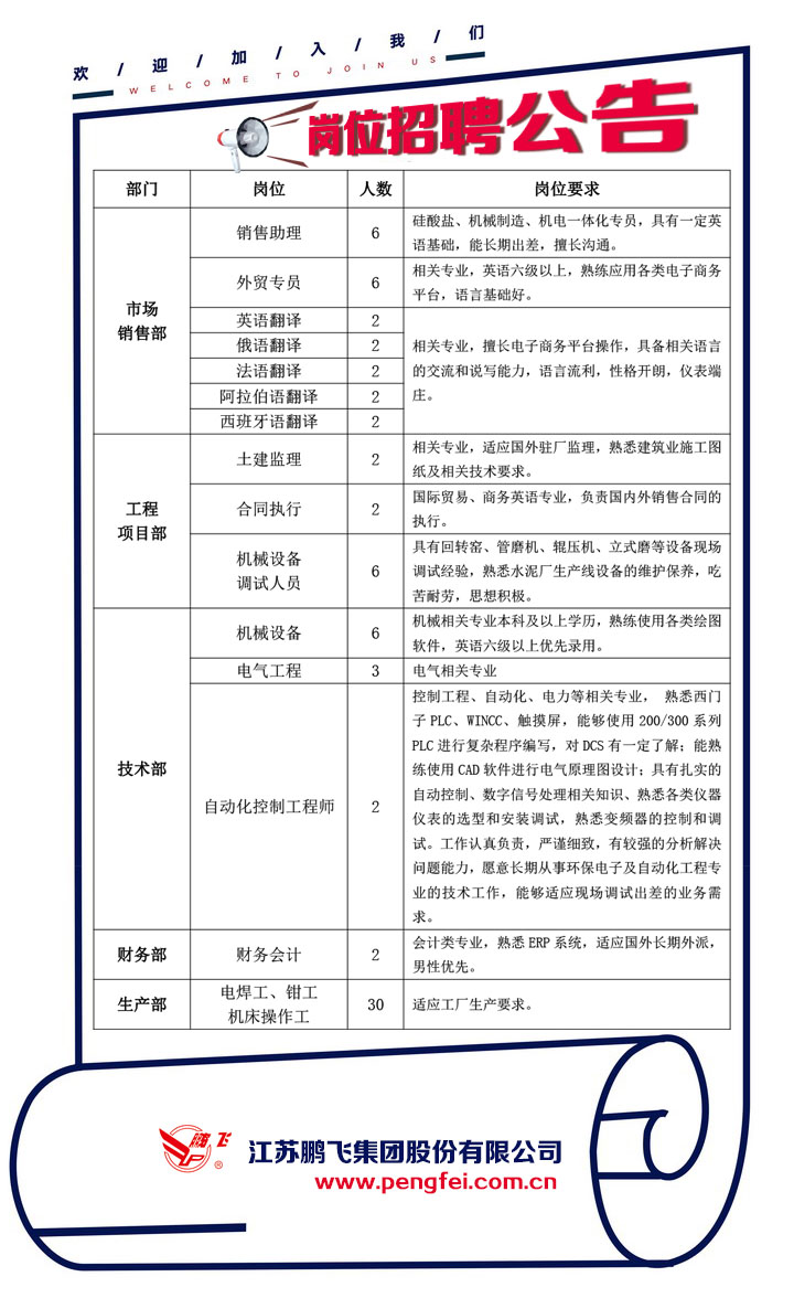 個人簡歷標明“院校+姓名+崗位”發(fā)至:pf@pengfei.com.cn