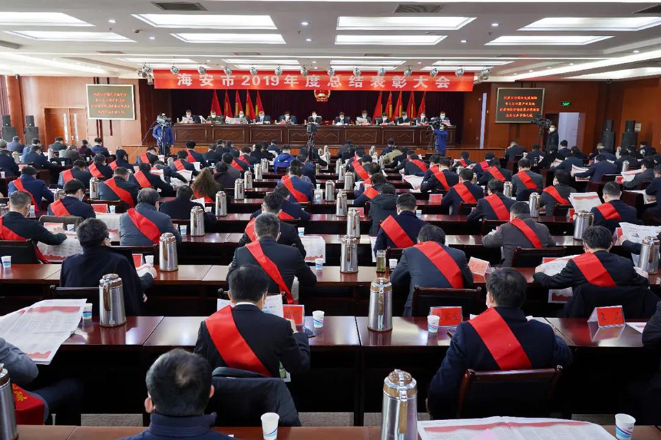 3月14日上午,海安市召開(kāi)2019年度總結(jié)表彰大會(huì),表彰全市各條戰(zhàn)線涌現(xiàn)的先進(jìn)單位和個(gè)人,由于受新型冠狀肺炎疫情的影響,會(huì)議實(shí)施一人一桌簡(jiǎn)便召開(kāi)。會(huì)議設(shè)主會(huì)場(chǎng)和分會(huì)場(chǎng),由海安融媒體中心進(jìn)行現(xiàn)場(chǎng)直播。市四套班子全體負(fù)責(zé)人,各區(qū)鎮(zhèn)、各部門主要負(fù)責(zé)人、受表彰對(duì)象代表出席會(huì)議。獲獎(jiǎng)單位分別上臺(tái)領(lǐng)獎(jiǎng),顧國(guó)標(biāo)書(shū)記做了重要講話。鵬飛集團(tuán)榮獲海安市委、市政府授予的杰出貢獻(xiàn)獎(jiǎng)、工業(yè)百?gòu)?qiáng)企業(yè)、開(kāi)放型經(jīng)濟(jì)先進(jìn)企業(yè)、海安市市長(zhǎng)質(zhì)量獎(jiǎng)、王家安董事長(zhǎng)當(dāng)選六星級(jí)企業(yè)家。