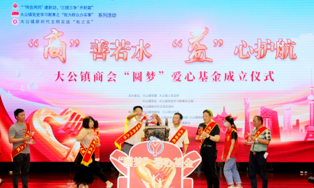 涓涓細(xì)流匯成大海,大公鎮(zhèn)商會(huì)會(huì)員企業(yè)家代表共同將愛心基金注入愛心池。緩緩騰起的煙霧,象征著企業(yè)蒸蒸日上的業(yè)績(jī),更象征著青少年們騰起而飛的夢(mèng)想!