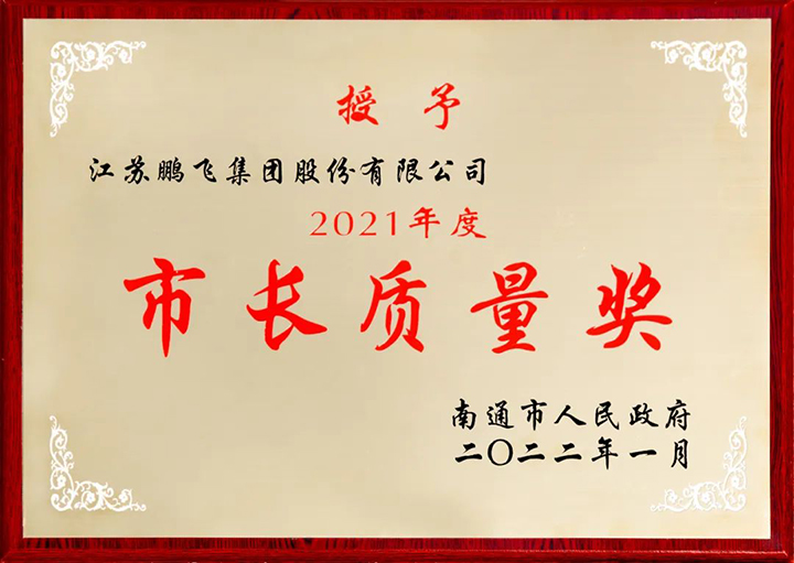 江蘇鵬飛集團股份有限公司榮獲2021年度南通市市長質(zhì)量獎