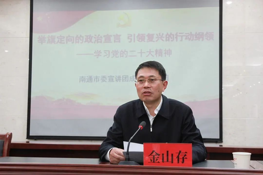大公鎮(zhèn)黨委書記金山存主持報告會。就抓好黨的二十大精神的學習宣傳貫徹工作,金山存強調(diào),