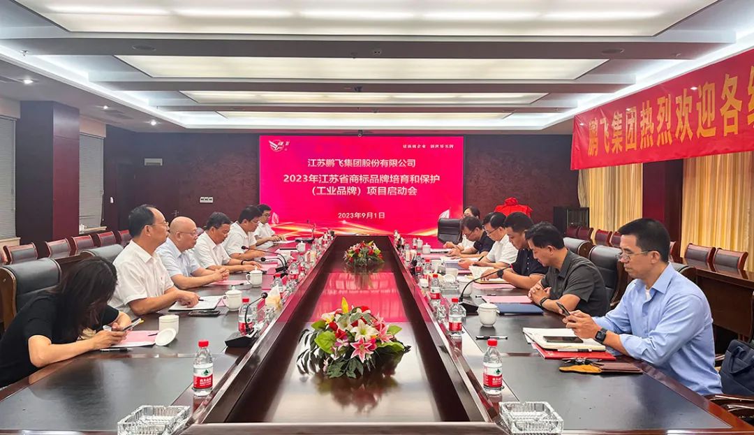 江蘇鵬飛集團(tuán)承擔(dān)2023'江蘇省商標(biāo)品牌培育和保護(hù)(工業(yè)品牌)項(xiàng)目,為推動(dòng)該項(xiàng)目的實(shí)施,9月1日下午,鵬飛集團(tuán)主持召開項(xiàng)目啟動(dòng)會(huì),南通市市場(chǎng)監(jiān)督管理局副局長(zhǎng)蔣愛龍、知識(shí)產(chǎn)權(quán)服務(wù)處處長(zhǎng)吳欣、知識(shí)產(chǎn)權(quán)保護(hù)處處長(zhǎng)曹曉青,海安市市場(chǎng)監(jiān)督管理局局長(zhǎng)余星星、副局長(zhǎng)蔣克榮、知識(shí)產(chǎn)權(quán)科科長(zhǎng)張福高,鵬飛集團(tuán)黨委書記、董事長(zhǎng)王家安,副總施鵬宇、賁道林以及公司品牌管理部等相關(guān)人員參加此次活動(dòng)。