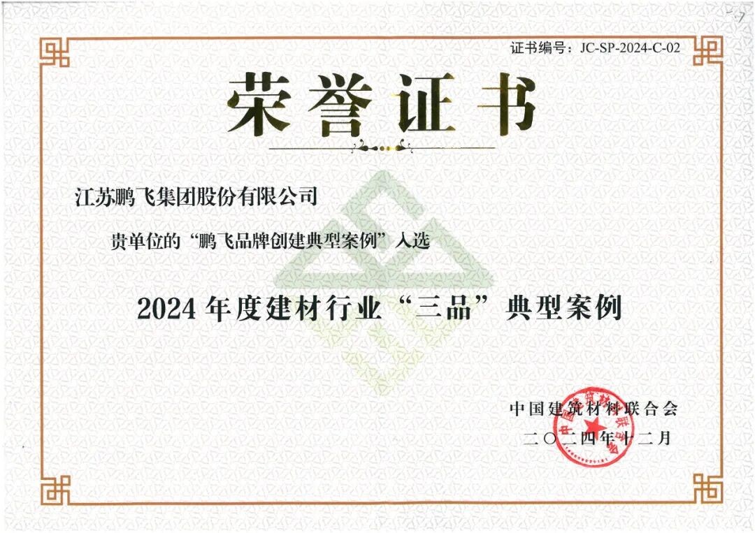鵬飛品牌創(chuàng)建典型案例入選2024年度建材行業(yè)“三品”典型案例。