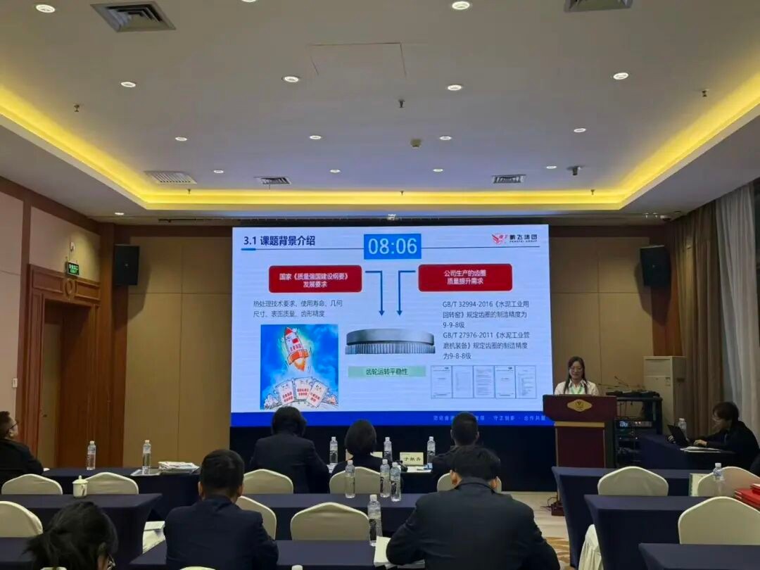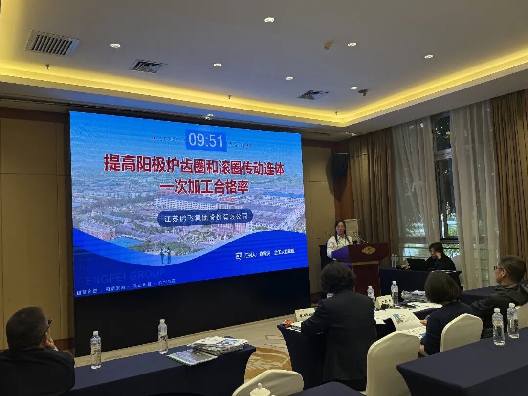 鵬飛金工QC小組發(fā)表成果《提高陽(yáng)極爐齒圈和滾圈傳動(dòng)連體一次加工合格率》。