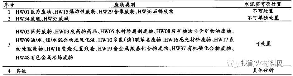 表2  水泥窯共處置危險(xiǎn)廢物種類