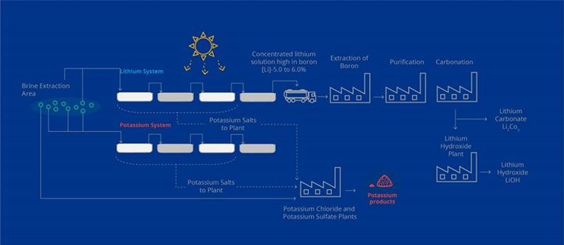 圖:SQM在智利Atacama鹽湖的鹽田循環(huán)系統(tǒng)