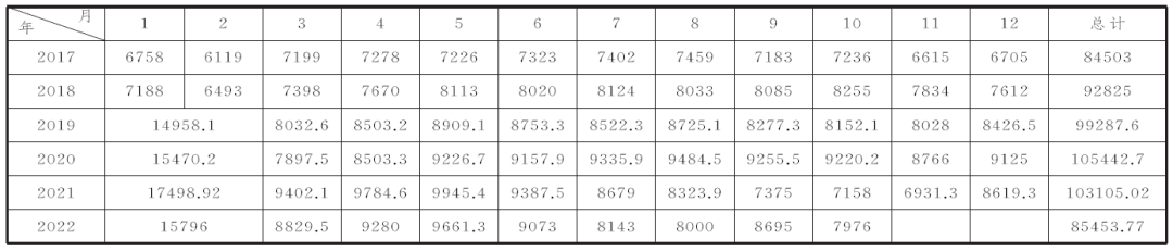 表2 2017~2022年粗鋼產(chǎn)量統(tǒng)計(jì)表(單位:萬噸)