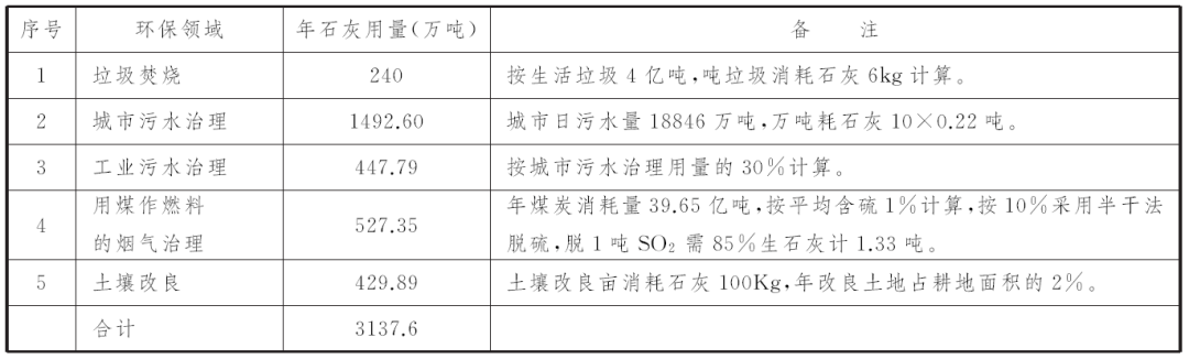 表5 部分環(huán)保領(lǐng)域石灰消耗量估算