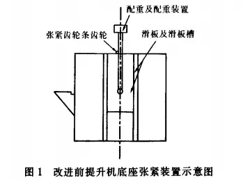 我公司有一臺運載能力較大的提升機,曾出現(xiàn)因跑偏無法調(diào)整的情況。經(jīng)仔細研究分析各種跑偏情況的可能性,將內(nèi)部的皮帶畚斗等全部拆卸下來,測量上下滾筒的平行度、同面度,測量提升機的箱體垂直度,檢查滾筒的磨損情況和下滾筒的平衡情況,以及皮帶老化情況,都沒有解決問題。后來通過改進底座的配重調(diào)節(jié)裝置解決了問題。到目前為止,連續(xù)使用了3年多,效果良好,沒有出現(xiàn)問題。具體措施如下: