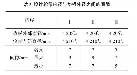 我們對2線三檔輪帶內(nèi)徑與墊板外徑在筒體頂部的間隙進行測量,測量數(shù)據(jù)見表3