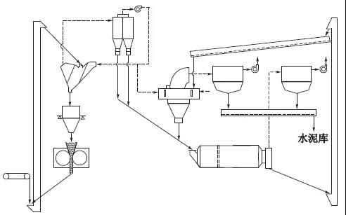 4)增加空氣輸送斜槽,將細(xì)粉分離器選出的水泥成品匯入該斜槽,經(jīng)提升機(jī)入水泥庫。