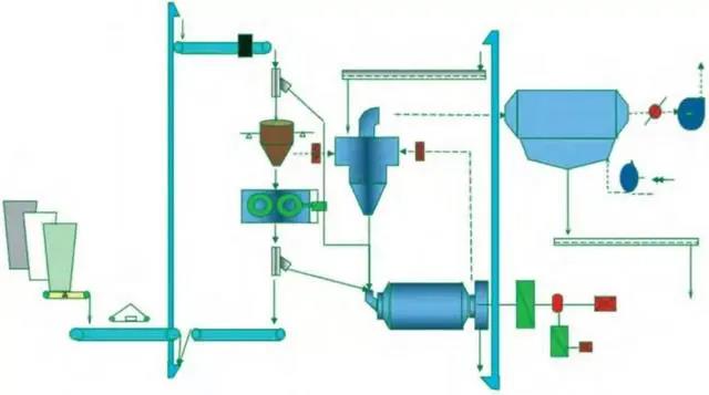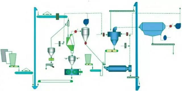 該系統(tǒng)工藝簡單,設(shè)備少,維護(hù)工作量少,水泥成品全部經(jīng)過球磨機粉磨,成品粒度分布較寬,水泥性能穩(wěn)定。