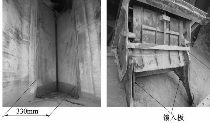 圖2 輥壓機(jī)喂料裝置通過(guò)口及饋入板
