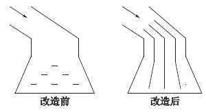 5)將V型選粉機(jī)下料溜子改為四通道下料方式,保證物料在V型選粉機(jī)內(nèi)部形成均勻料幕(見(jiàn)圖3),提高選粉效果,預(yù)粉磨系統(tǒng)成品物料比表面積可提高到190m2/kg以上。
