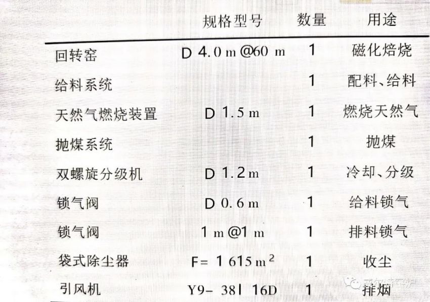 一、燒結(jié)菱鐵礦回轉(zhuǎn)窯參數(shù)
